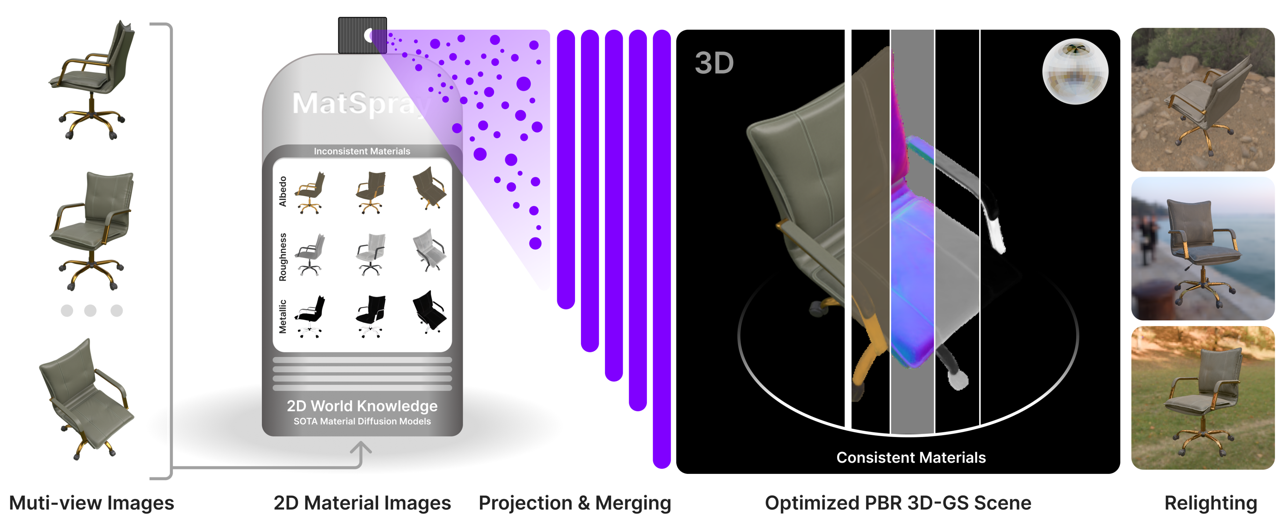 MatSpray — Better relightable 3D objects by using 2D material world knowledge.
